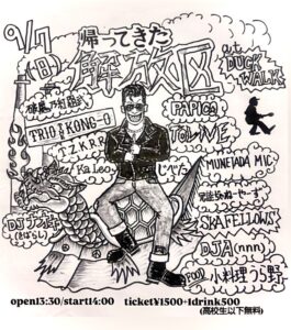 「帰ってきた解放区」at DUCKWALK✨ 主催の破魔乃紅羅武・ケイタさんのもと、最高の仲間たちが集まって音楽と笑顔にあふれた一日! 出演は じべた冗談ぢゃねーやーずTZKRR Ka Leo TOLIVE」トリオTHE […]