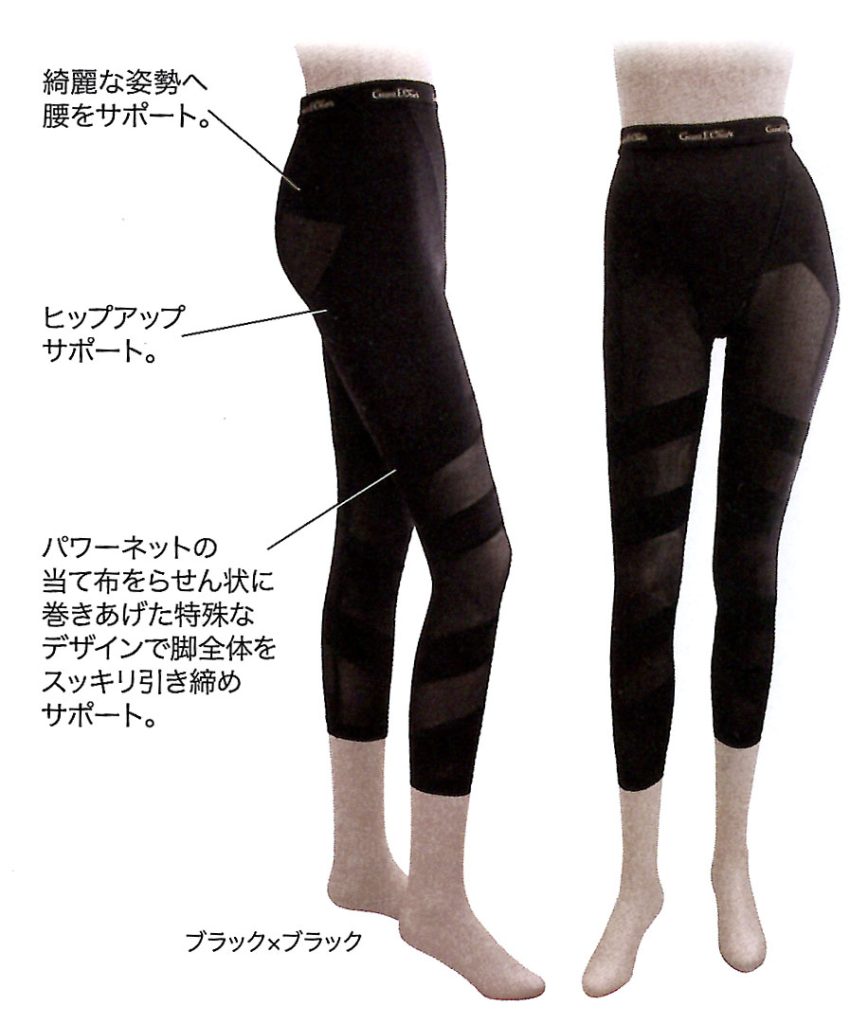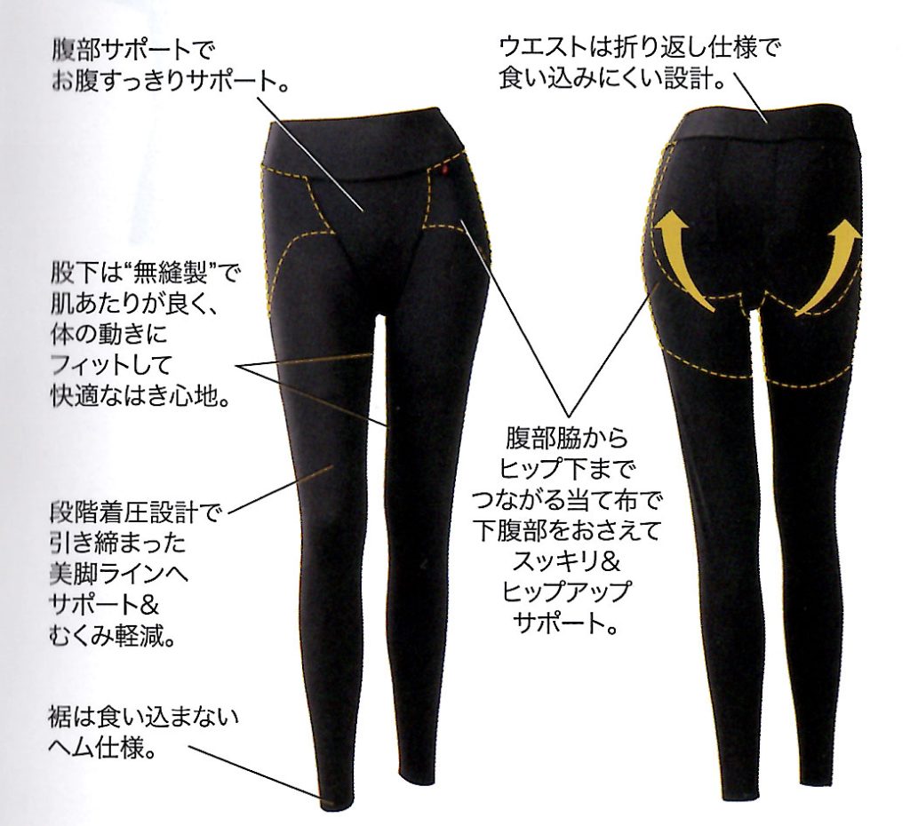 レッグ部分は段階圧着設計で足のむくみ軽減。