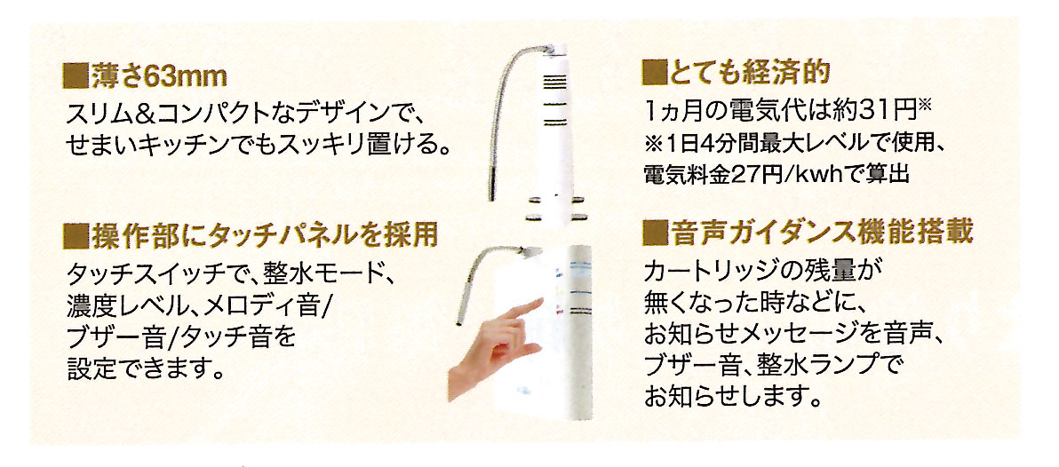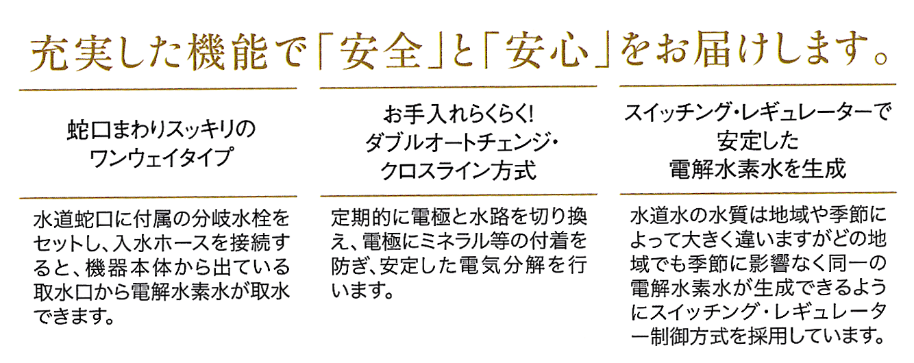 より「おいしい」『健康的」を目指す、連続生成型電解水素水整水器